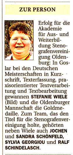 Die Nordwest-Zeitung informierte am 1. Juni 2006: