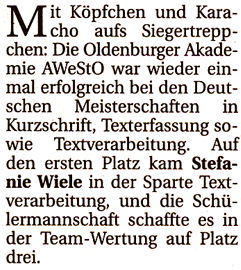 Artikel in der Rubrik "Stadtgeflüster" in der Nordwest-Zeitung vom 22. Mai 2007: