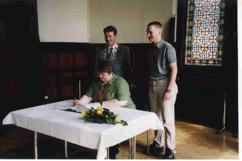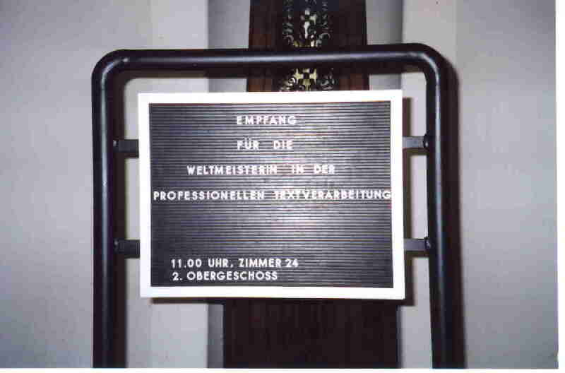 Rede von Herrn Oberbürgermeister Dr. Poeschel: Download der Rede im PDF-Format: rede_ob_poeschel.pdf Presseexemplar Empfang für die Weltmeisterin in der "Professionellen Textverarbeitung", Freitag, 24.08.2001, 11.00 Uhr, Großer Sitzungssaal Oberbürgermeister Dr. Jürgen Poeschel Anreden, mit großer Freude habe ich die Nachricht aufgenommen, dass die Weltmeisterin in der "Professionellen Textverarbeitung" im Jahr 2001 aus Oldenburg kommt. Diese Freude wird sogar noch dadurch gesteigert, dass der WM-Dritte in dieser Disziplin ebenfalls ein Mitglied der Oldenburger Stenografen-Vereinigung ist. Damit hat dieser Verein wohl so erfolgreich wie noch nie zuvor an einer Weltmeisterschaft teilgenommen und ich gratuliere Ihnen, sehr geehrte Frau Schindelasch, in Ihrer Eigenschaft als Vereins- und Verbandsvorsitzende, und allen Vereinsmitgliedern sehr herzlich zu dieser für den Verein so erfolgreichen WM-Teilnahme. Vor allem aber gratuliere ich Ihnen, sehr geehrte Frau Wiele, zum Titelgewinn und Ihnen, sehr geehrter Herr Schönfeld, zum Medaillenplatz. Ich freue mich, dass Sie gemeinsam mit Ihren Freunden, Angehörigen und Vereinskollegen heute zu uns ins Alte Rathaus gekommen sind und heiße Sie im Namen der Stadt Oldenburg herzlich willkommen. Medaillen und Siege, Meistertitel, Ehrungen und Auszeichnungen – das sind wir eigentlich eher von unseren Oldenburger Sportlerinnen und Sportlern gewohnt – im Schwimmen und Windsurfen, im Boxen und Ringen, in der Leichtathletik und in den verschiedenen Ballsportarten sowie in vielen anderen Disziplinen. Allerdings ist auch da der Gewinn einer Weltmeisterschaft stets etwas Außergewöhnliches, etwas ganz Besonderes. Seit wenigen Wochen haben wir nun in unserer Stadt eine neue Weltmeisterin, nämlich eine Weltmeisterin in der "Professionellen Textverarbeitung". Das ist – auf den ersten Blick – ein Bereich, der eher wenig mit sportlichen Höchstleistungen in Verbindung gebracht wird als vielmehr mit "dröger" Büroluft und Schreibstuben-Atmosphäre. Aber, meine Damen und Herren – und das werden Sie selbst am besten wissen, die Sie zum Teil vielleicht schon an diesen oder ähnlichen Meisterschaften teilgenommen haben – die Leistungen unserer beiden erfolgreichen Medaillengewinner, und auch die der übrigen WM-Teilnehmer, sind durchaus auch Höchstleistungen im besten sportlichen Sinn. Denn schließlich sind auch hier Eigenschaften wie Kondition, Konzentrationsvermögen und Ausdauer, aber auch Geschick, Reaktionsschnelligkeit und Trainingsfleiß gefragt – und das sind allesamt Tugenden, die auch einen erfolgreichen Sportler ausmachen. Daher habe ich vor Ihrer Leistung, sehr geehrte Frau Wiele, sehr geehrter Herr Schönfeld, höchsten Respekt, und ich bin mir sicher, auch die Anerkennung der Oldenburgerinnen und Oldenburger ist Ihnen gewiss, denn Sie haben die Farben unserer Stadt bei den diesjährigen Titelkämpfen in der Landeshauptstadt Hannover bestens vertreten. Gleich in mehreren verschiedenen Disziplinen haben Sie beide sich Ende Juli/Anfang August im Rahmen des 43. Intersteno-Kongresses im Wettbewerb mit anderen WM-Teilnehmerinnen und Teilnehmern aus rund 30 Ländern gemessen – und haben überall mit beachtlichem Erfolg abgeschnitten. Sei es im Maschineschreiben mit rund 400 und mehr Anschlägen pro Minute bei einer verschwindend geringen Fehlerzahl, sei es in der Autorenkorrektur, in der Kurzschrift, in der Kombinationswertung oder in der Schnellübertragung – in allen Wettbewerbskategorien erreichten Sie hervorragende Plazierungen, was im übrigen für Ihre große Vielseitigkeit spricht. In der "Professionellen Textverarbeitung" aber, waren Sie, sehr geehrte Frau Wiele, letztlich nicht zu schlagen – und auch Sie, sehr geehrter Herr Schönfeld, mussten sich am Ende nur Ihrer Clubkameradin und einer weiteren Konkurrentin aus Österreich geschlagen geben. Sicher haben Sie beide sich sehr intensiv auf diese anstrengenden und strapaziösen Titelkämpfe vorbereitet, sonst wären solche außergewöhnlichen Leistungen wohl kaum zu erringen. Dennoch freut es mich zu hören, dass Sie beide Ihre tollen Fähigkeiten und Fertigkeiten eigentlich mehr als Hobby betrachten und dass auch bei den Wettkämpfen eher Spaß und Freude im Mittelpunkt standen – wie auch sicher die gute Stimmung in der gesamten Oldenburger Mannschaft und im Verein zu den Erfolgen beigetragen haben. Sehr geehrte Frau Wiele, ich gratuliere Ihnen nochmals sehr herzlich zum Weltmeistertitel. Er ist neben dem rein persönlichen Erfolgserlebnis und der interessanten Erfahrung eines internationalen Wettstreits sicher auch eine schöne Bestätigung für Sie selbst und für Ihr Können. Und im Beruf kommen Ihnen Ihre Talente ja sicher auch sehr entgegen, denn als Angestellte beim Kommunalen Systemhaus Niedersachsen – einer GmbH, die in enger Beziehung zu unserer Kommunalen Datenverarbeitungszentrale KDO steht – sind Ihre weltmeisterlichen Qualitäten auf dem Computer natürlich sehr gefragt. Im übrigen macht Ihr Weltmeistertitel in der "Professionellen Textverarbeitung" zusätzlich deutlich, dass unsere Stadt zu Recht bekannt ist für ihr traditionell hervorragendes Angebot auf dem Dienstleistungssektor. Nicht zuletzt deshalb ist auch der Stenografenverein hier seit 1857 vertreten und zählt wohl mit zu den größten im Bundesgebiet. Zugleich steht Ihr Titel aber auch als Symbol dafür, welch große Chancen die intelligente Nutzung neuer, innovativer Technologien unserer Stadt eröffnen kann. In diesem Sinne freue ich mich, dass Sie aus Vlotho zu uns nach Oldenburg gefunden haben, dass Sie sich hier bei uns offensichtlich wohl fühlen und dass Sie sich zudem hier in Ihrem Verein und im Deutschen Stenografenbund so sehr engagieren. Als kleine Anerkennung und Erinnerung an den heutigen Tag möchte ich Ihnen dieses Halstuch überreichen, nochmals verbunden mit dem herzlichen Glückwunsch der Stadt Oldenburg. Sehr geehrter Herr Schönfeld, auch Ihnen gratuliere ich sehr herzl