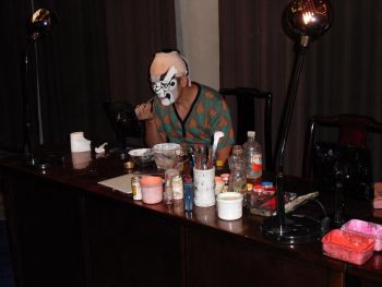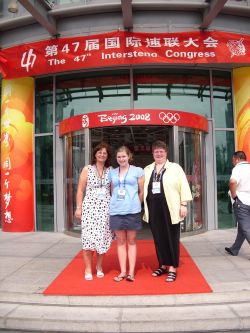 Vor der Aufführung war es möglich, die Schauspieler beim Schminken zu beobachten und zu fotografieren. Zunächst ist die Peking-Oper für deutsche Ohren schon etwas speziell, hat aber auch ihren Reiz. Man darf sie sich nur nicht wie eine deutsche Oper vorstellen – es wird weniger gesungen, sondern vieles pantomimisch und akrobatisch dargestellt. Die meisten fuhren nach der Vorstellung direkt mit dem Bus zurück ins Hotel, einige ließen sich aber an der nächsten U-Bahn-Station absetzen, um den Abend in einem netten Lokal am Ufer des Hou Hai beim Lotusmarkt ausklingen zu lassen. Donnerstag, 20. August 2009: Zaijian Beijing Am heutigen Tag, der uns mit strahlendem Sonnenschein und ca. 35 Grad beglückte, hatten wir nicht mehr so viel Programm. Um 11 Uhr besuchten Sylvia und ich die Intersteno-Generalversammlung, in der u. a. Paris als Austragungsort der nächsten Weltmeisterschaften (10. - 16.07.2011) vorgestellt wurde. Am Nachmittag begann um 16 Uhr die Siegerehrung. Es war relativ schwierig, nicht den Faden zu verlieren und mitzubekommen, um welchen Wettbewerb es gerade geht. Dies insbesondere aufgrund der sprachlichen Schwierigkeiten, denn Englisch sprechende Finnen oder Italiener hören sich zwar interessant an, aber man versteht doch leider nicht jedes Wort ;-) Auch die per PowerPoint angezeigten Namen passten nicht so unbedingt zu den aufgerufenen ... Deutschland hat sich bei der diesjährigen WM gut geschlagen, Medaillen und Pokale wurden reichlich abgesahnt, Details siehe hier. Nach der Siegerehrung gab es noch kurze akrobatische Aufführungen sowie ein chinesisches Büffet.